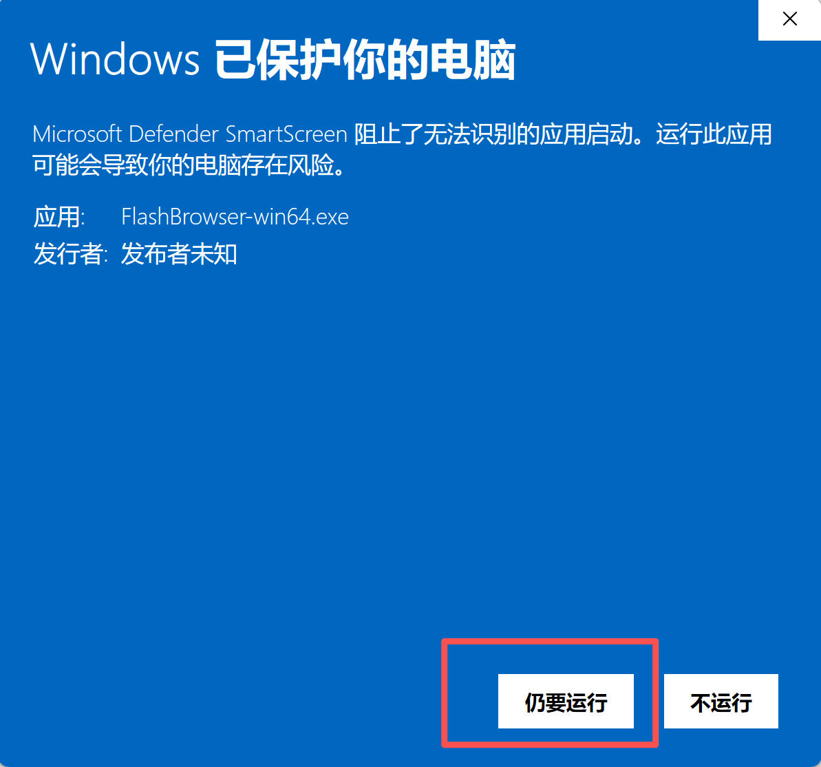 下载后直接点击FlashBrowser-win64.exe进行安装,出现提示后
